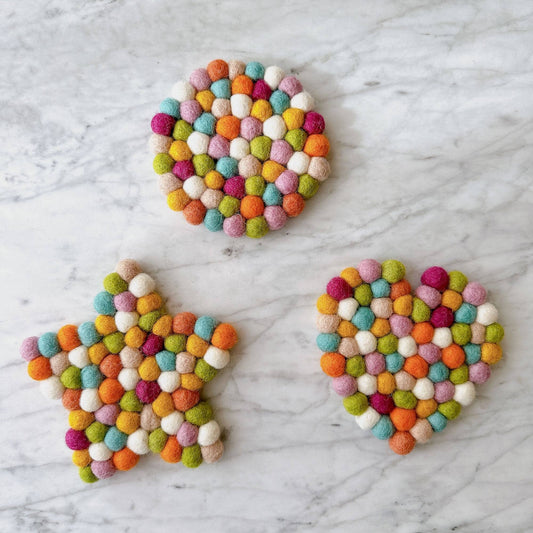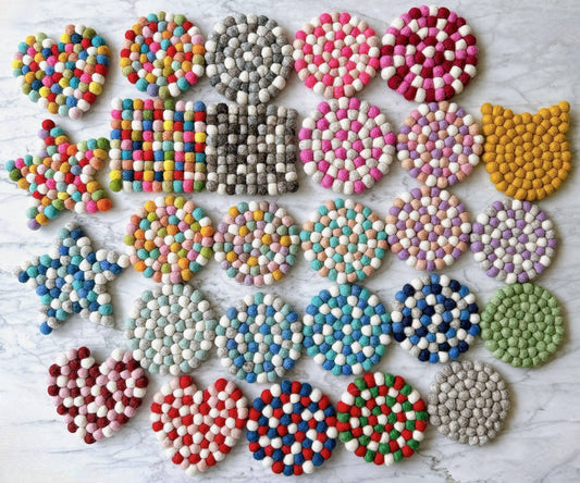 Felt Ball Rainbow Round Cup Coasters - Set of 4