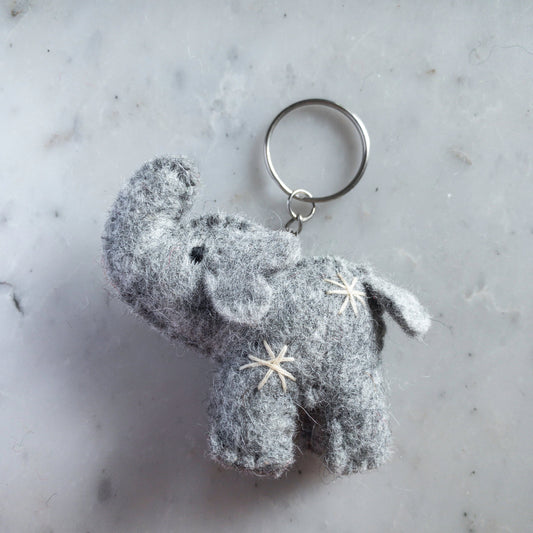 Felt Keychain - Elephant with Snowflake Embroidery