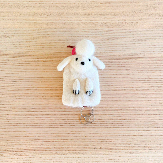 Felt Keychain - White Poodle Key Cover / Keychain